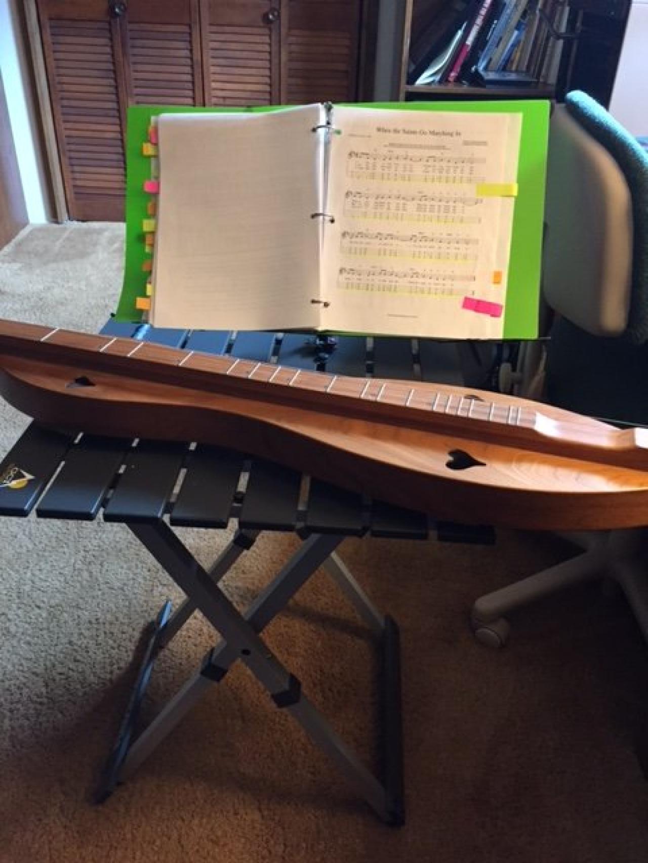 Personally, I really enjoy just playing the dulcimer ON THE LITTLE T.V. TABLE with my little 4 feet on the bottom of the dulcimer. In the early books on dulcimers, Jean Ritchie has many photos of folks playing them on tables....but mostly she played her on her lap. Makes more sound on the little table...looks ready to play all the time sitting on my little table. yeah, and I play it often. While I'm in the shop working as I am today, I'm thinking what songs I'm going to play on my dulcimer when I get back in the house. ha. (How can I keep from singing) in the tune that's going on in my head today.