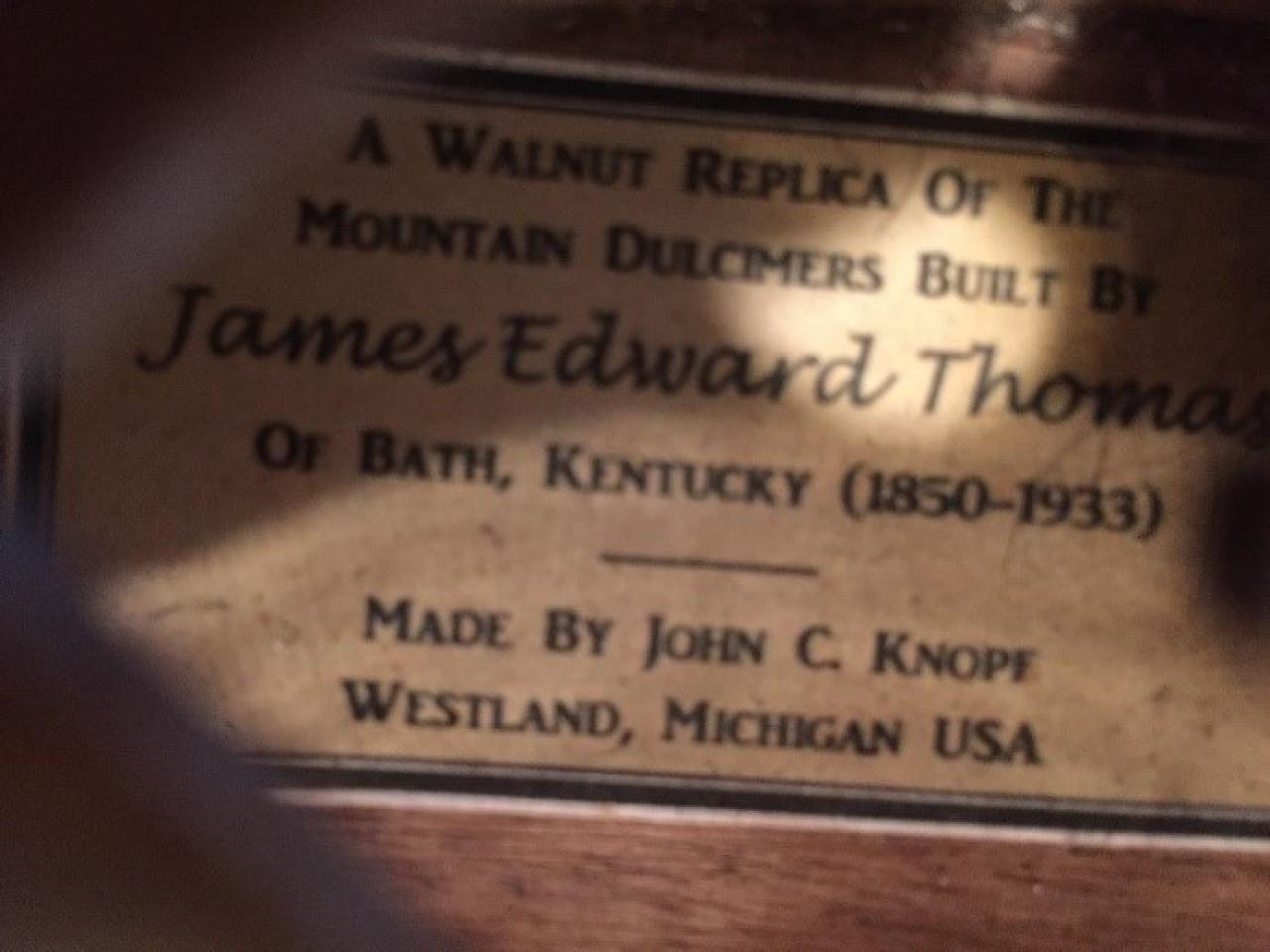 The dulcimer in the middle was made for me almost exactly a year ago by John Knopf. It is patterned after the E5 dulcimer in L. Allen Smith’s book that was made by James Edward Thomas 22 June 1915. Not sure about the original, but mine is walnut.