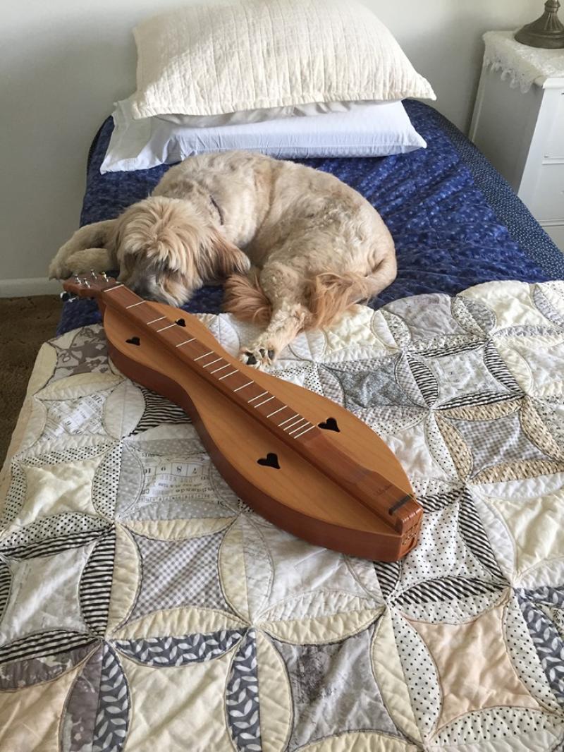 My two boys. Shep, the one with the mandolin, left us five years ago, but Riley is still enjoying the "Life of Riley." Love them both.