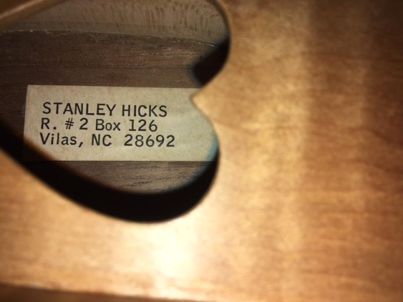 Help me out, historians and collectors. I just acquired a Watauga Co. NC dulcimer with the labels of two known craftsmen: Stanley Hicks and David Love. The Hicks label was centered in a soundhole where you would expect to see a Hicks label, but the Love label was almost hidden toward the center of the back.