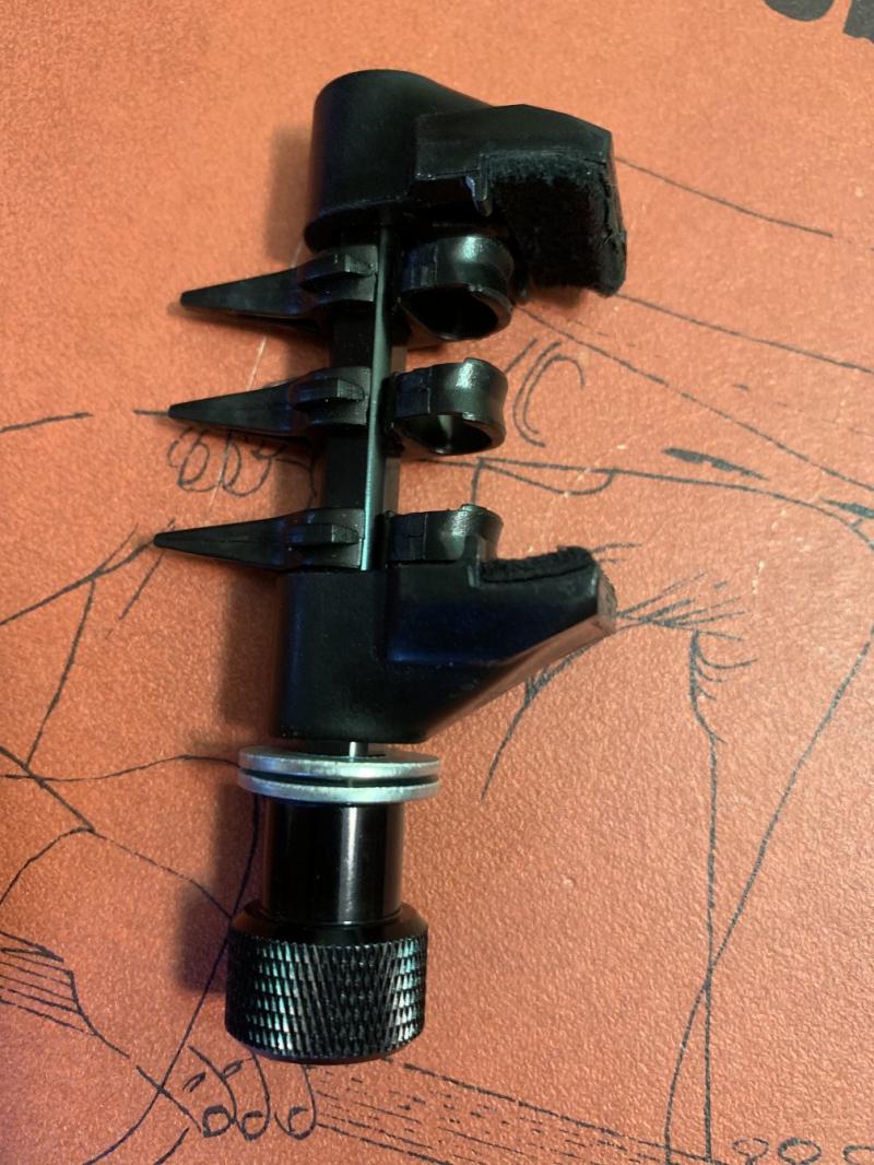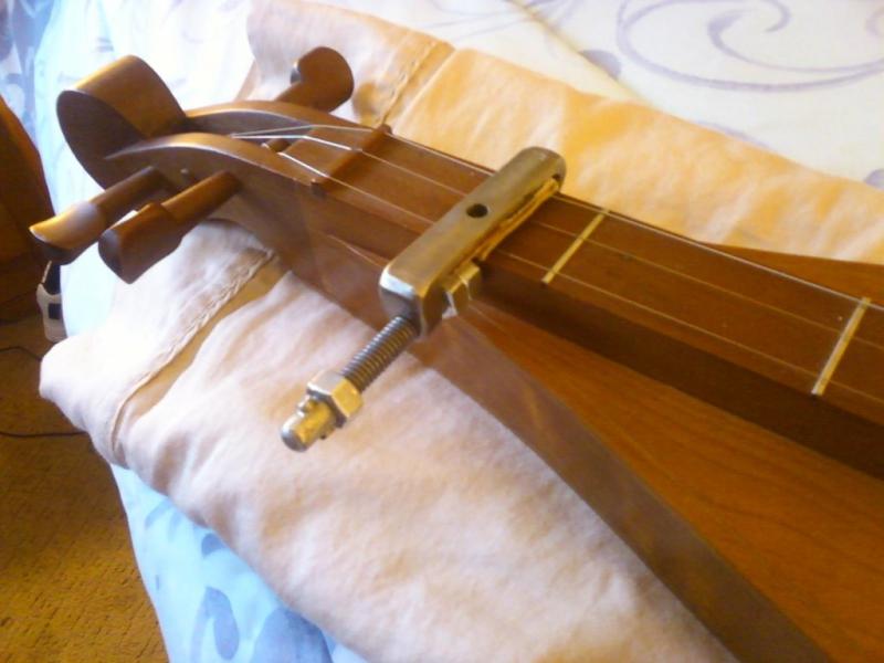 Modified a Spider Capo to use on a hogfiddle. A couple of washers were needed to help it close a little tighter.