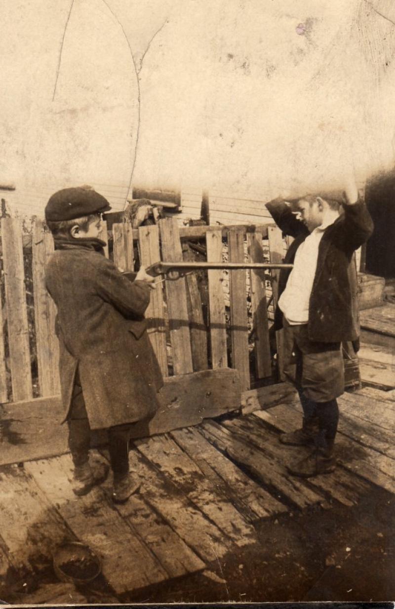 Thanks Jan! That helps, I kind of figured the third one was old by the way they dressed. Here's another one, I think it was taken around 1916 when my Grandfather was posted in Columbus, New Mexico after Pancho Villa's raid. At first I thought they were railroad workers, but after a closer look I think they were miners. The photo was in bad shape so I tried to clean it up digitally .