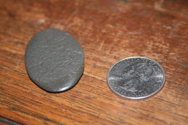 I was looking for other stones to make a pick out of when I found this stone(And 12 cents). I remembered Ken H's post about his malachite noter and I thought "This might work". After polishing I now have a stone noter and pick! Rock music!!!
