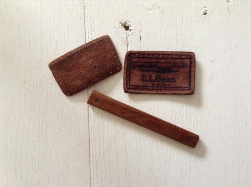 We wear our jeans until they are ready to be cut to rags. I was cutting a couple pairs of Mark's jeans apart and saved the leather tags from the waistband. They feel really nice in my hand and give a good tone.