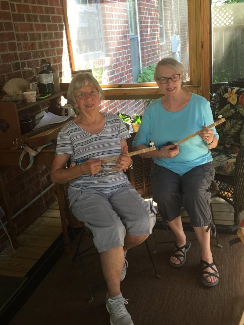 My friend, Gail, and I played our cantars on my porch. We also played dulcimer for about 1 1/2 hours but somehow our photographer (my husband) didn't get pictures of that. Last year we played on her porch. We had so much fun. Nina aka Dulcinina