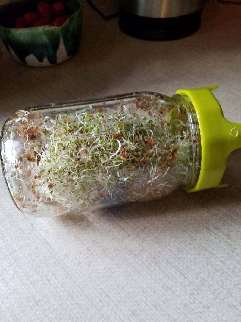 My first "crop" of alfalfa sprouts. Uhh, not sure I attached the picture correctly. Nina