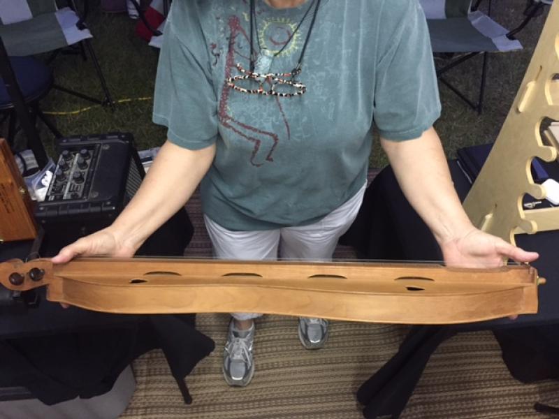 So my new dulcimer went along for the ride to Native Rhythms. While I was there I met Marsha Harris, a fine musician on both dulcimer and native American flute. I showed her the instrument. Marsha put a new string on, tuned her, and gave me some pointers on playing. She confirmed what I had learned about my new instrument and that she was in good shape.