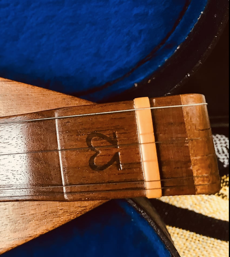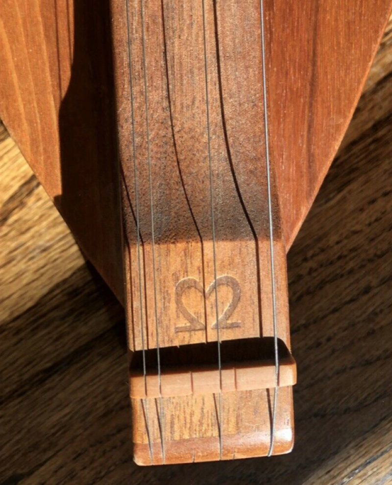 The McSpadden arrived. Not a mark on it, and was never used. The case is new no scuffing again. Will post pics tomorrow. It is signed by Larry. I spent the evening fixing it, thought the price was too low, as the keys wouldn't hold and it was strung wrong. Restrung it, and 4 lock washers and as good as new. Will Tune it to dADD, and try to find out more information from McSpadden on its history. The washers in the keys were suppose to be spring type, but I guess the age and storage caused them to loose their tension. Replaced with lock washers and good to go. Restringing properly tonight. It is a Model M8-W signed by Larry.