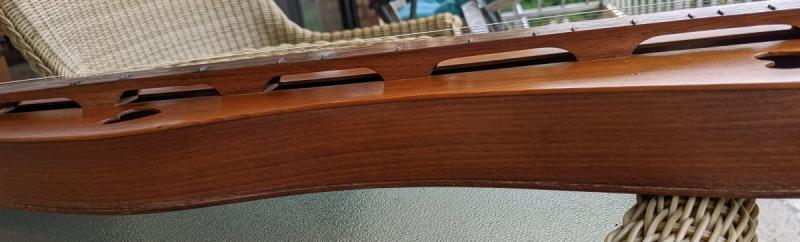 In addition, I slightly sanded the pegs, as Randy had recommended, only allowed for a few wraps before cutting off the excess at the pegs as Ken said, and installed the strings left to right - for some reason I had been connecting the bass string to what was the middle peg (see my prior photos). I'm back to 12, 12 and 22, in C G G tuning. The pegs seem to hold, but it's maddening to get them tuned just right, even to each other - I'm reading that that is an acquired skill.