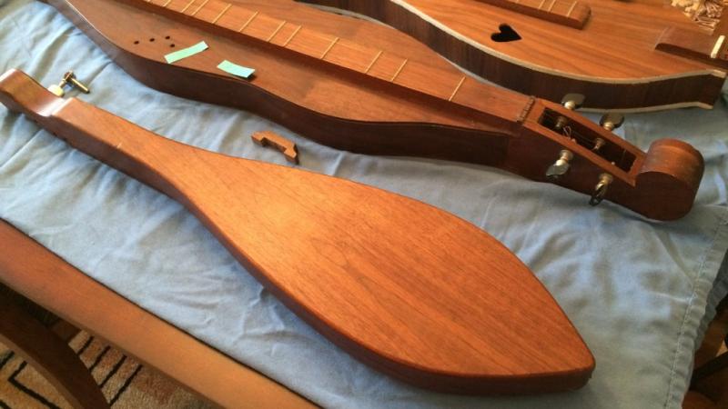 My first dulcimer, made in about 1970, before I knew much about building instruments, stated in my classroom and kids were welcome to use it. The diatonic scale made it easy for kids to pick out tunes or invent their own. This old dulcimer, made from a the wood from a hollow core mahogany door and model railroad plywood for the top, has a lot of battle scars from kids playing it, but has given a lot of kids a lot of fun.