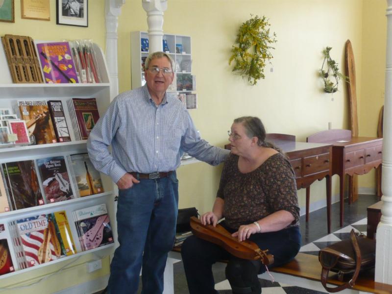 Nice pictures, fun seeing John picking out his new dulcimer with Warren and very nice picture of Jan playing one of his dulcimers.