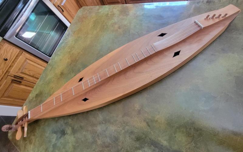Hello all, I wonder if anyone knows who made a dulcimer my stepmother just gave me. She told me this dulcimer was “made for her by some guy she met riding a train down the east cost of the US in about 1970.” She does not remember much of the event, only that the man was very nice and upon learning that Jane (stepmom) was a music teacher, offered to make her a customer dulcimer. Her choices for peg box decoration were a dog’s head or a woman’s head, and she chose woman’s head.