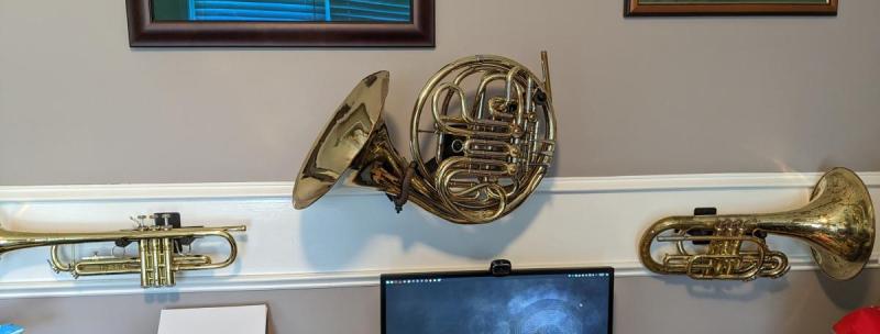 I am a brass player as well. Played trumpet, French horn, and mellophone all throughout school and have recently got back into it. Here are my current instruments: a Bach TR-200 trumpet, Reynolds Contempora Pottag Model French horn, and Yamaha YMP-201 mellophone.