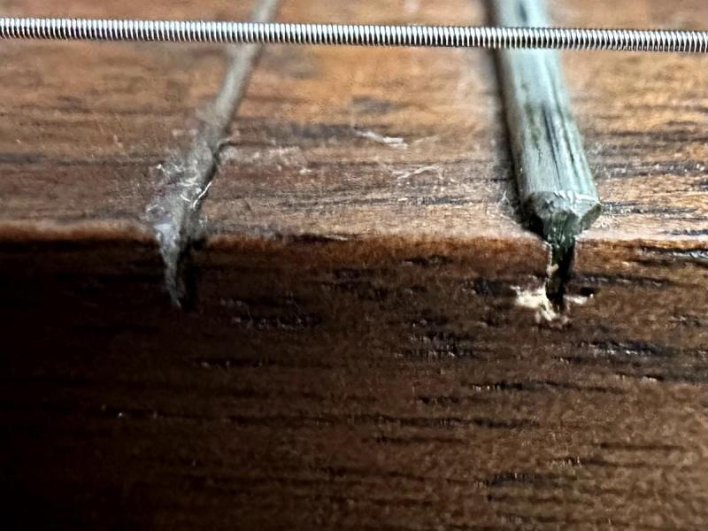As for the slot, it doesn't bother me but it's definitely a curiosity. It was definitely cut with precision. The side profile shows a squared channel, identical in profile, width and depth to the other frets, so that's what piqued my interest. To be fair, I don't know who the luthier was and there's no label inside the soundbox that I can find, but it was definitely ordered in Townsend, TN around 1980 or 1982. I know Sam Carrell was still making instruments at that time and was overwhelmed with orders, so he enlisted some help. Maybe an apprentice cut the slot? I also think that was about the time when Mike Clemmer was getting started. Maybe it was an early build and a mistake was made? Either way, It never seemed to affect the sound or the playability, so I'll just call it "character."