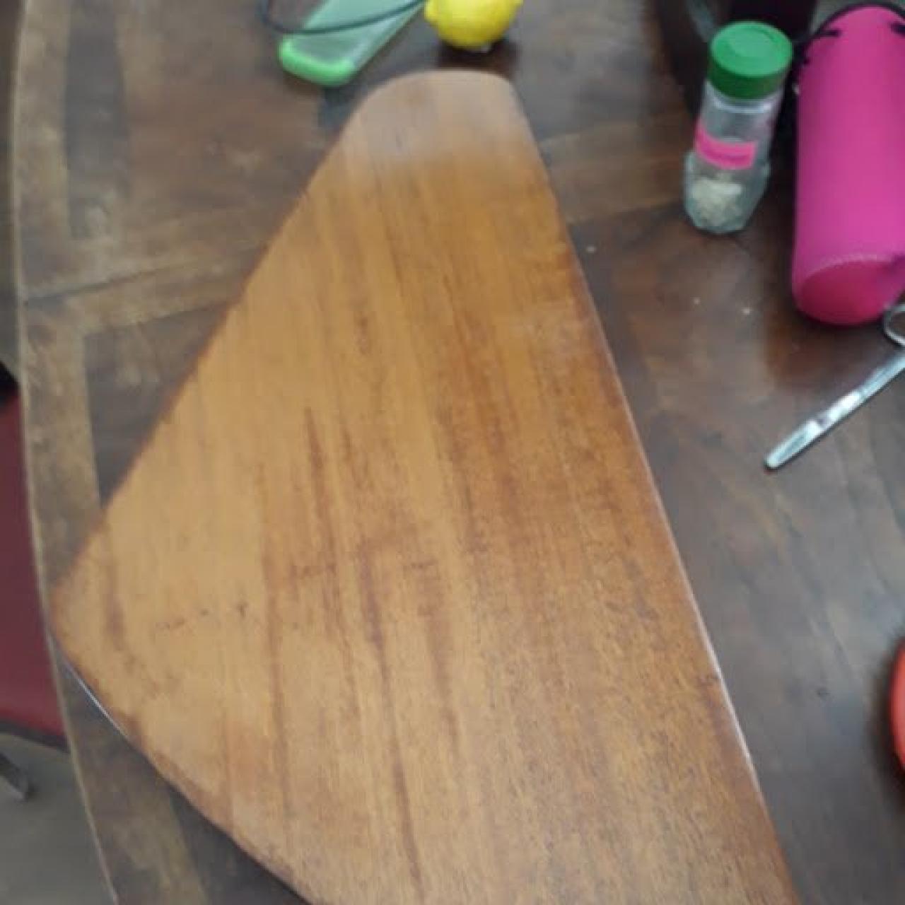 Sanding it is. That are a few seriously nasty looking dings that the moisture and iron technique are not going to touch. But then, if the patina for the pegs work out, the coloring in the dinged area might lend a bit of "old" to the appearance.