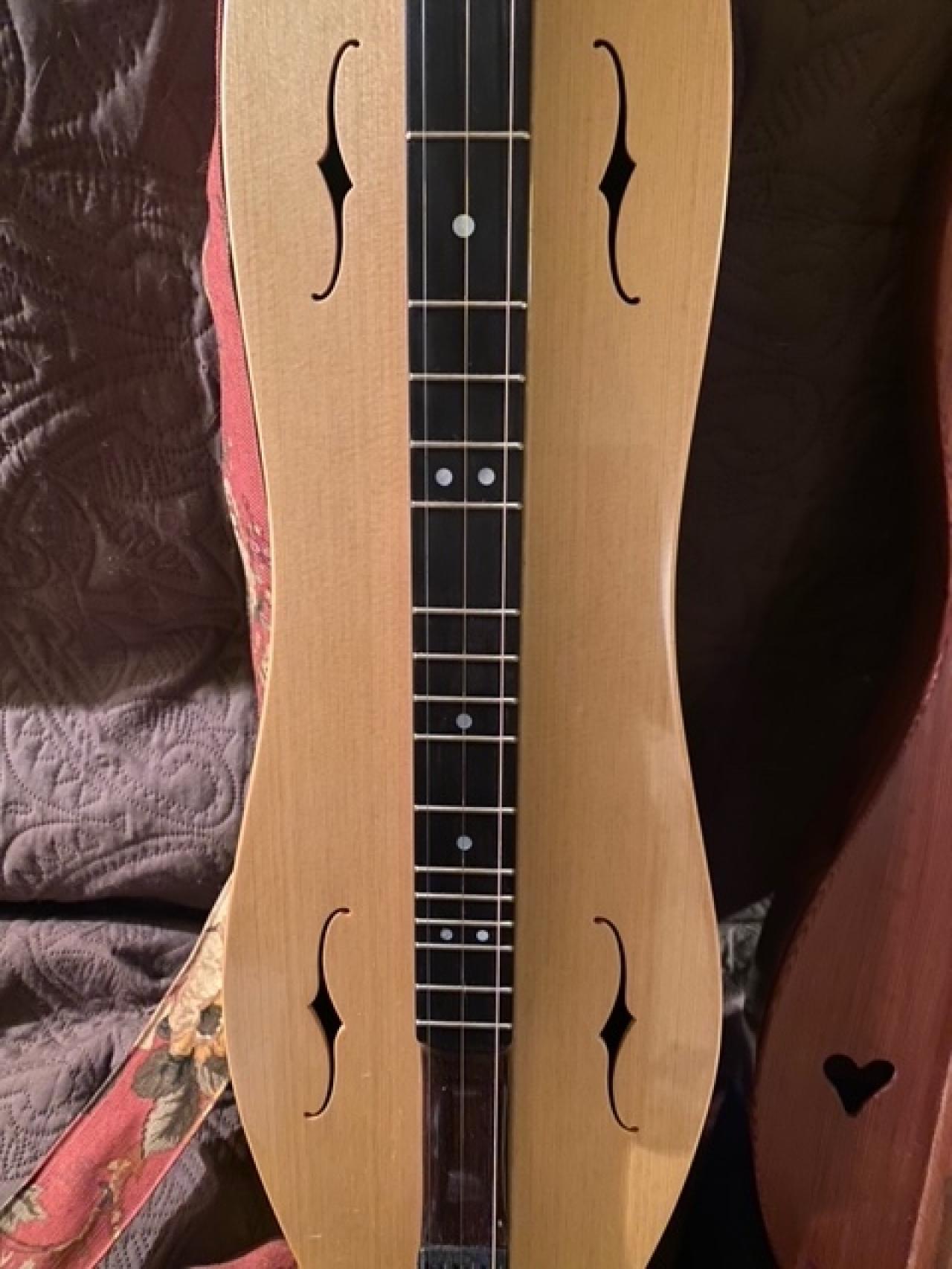 Hi,  I am in possession of a NHD Pudge Pro which I received a few months ago.  I am considering selling it due to a problem with arthritis in my left thumb.  It's Peruvian walnut/port Orford cedar with an ebony fretboard.  The look and sound of it are both beautiful.  The VSL is 24 inches.  It has the additional 1.5 and 8.5 frets also.  It is posed next to a McSpadden Ginger. The bridge allows you to adjust intonation up and down the fretboard and the tuners are designed to make string changes much easier than usual.  The frets are EVO frets. If you would like additional pictures/information, please let me know.   Thx!