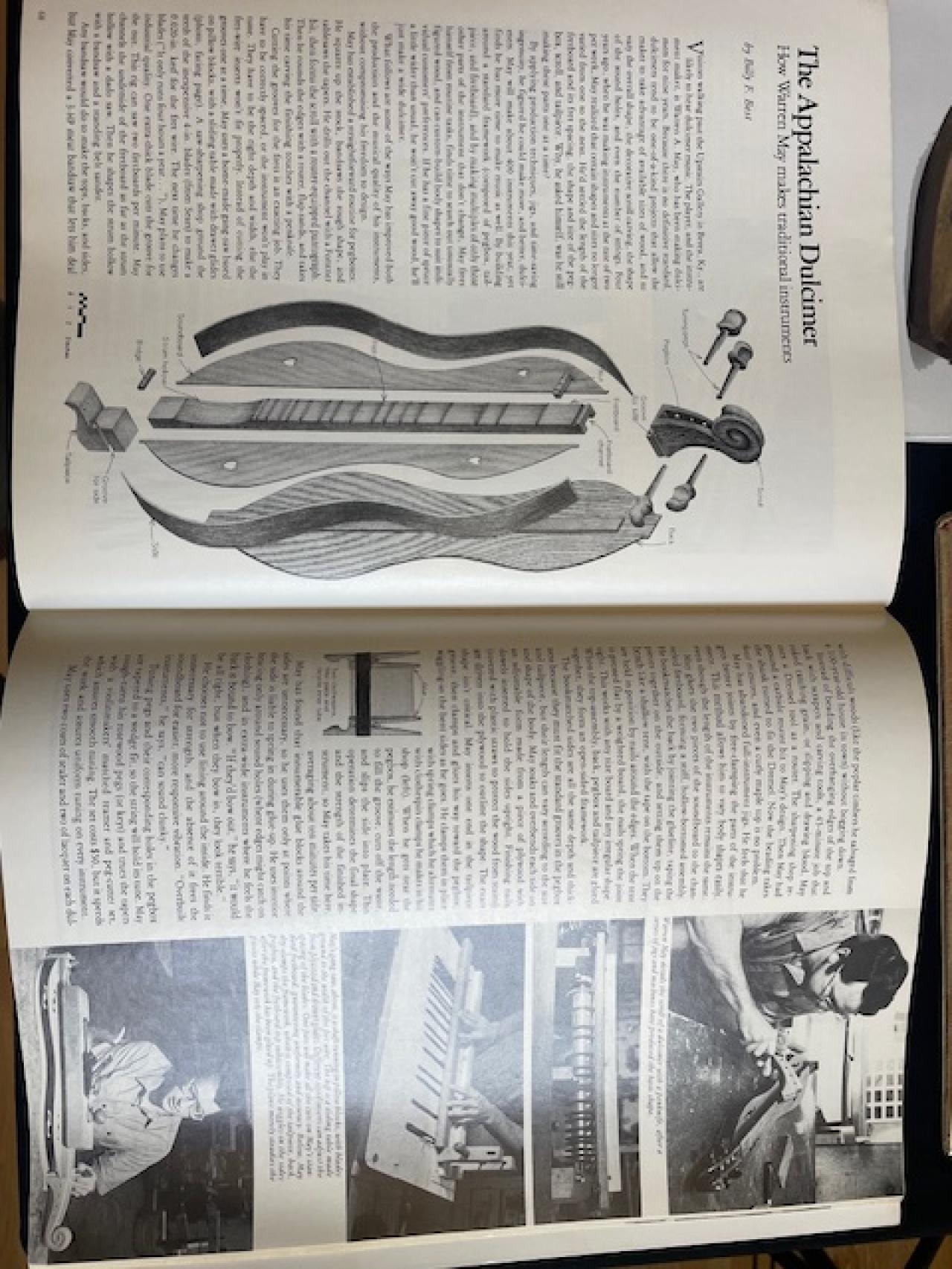 I've got some dulcimer building resources I'm selling for $50 as a set. Two are full blown construction books, one is an article from Fine Woodworking and two relate to its history and various designs. I also have full scale plans for an hourglass dulcimer, not pictured.