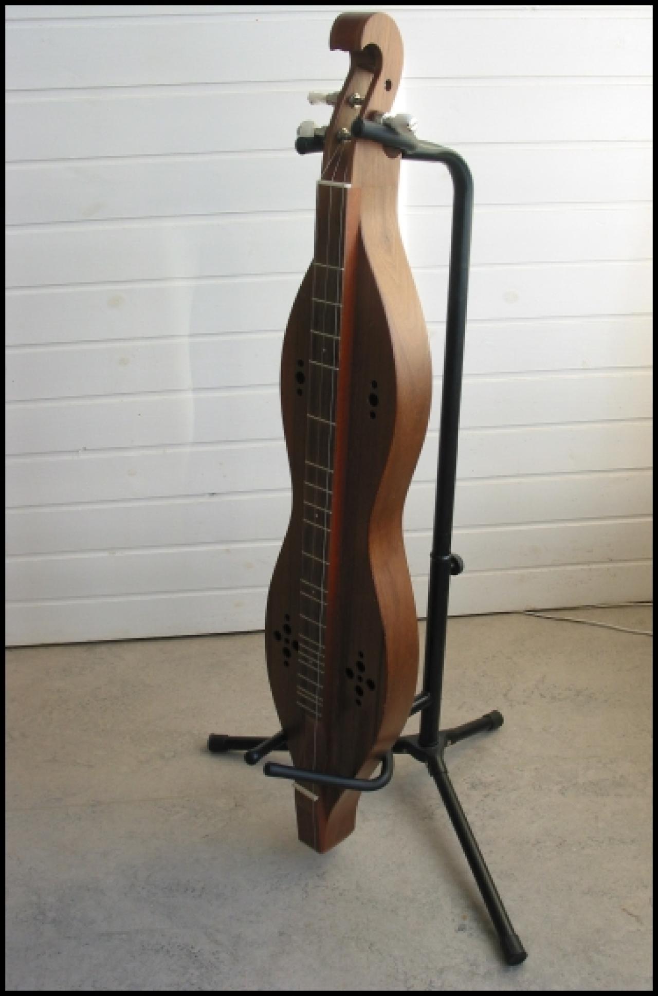 I used a cheap guitar stand and a wrench to bend the holders to fit a dulcimer. $10,- and 10 minutes work.