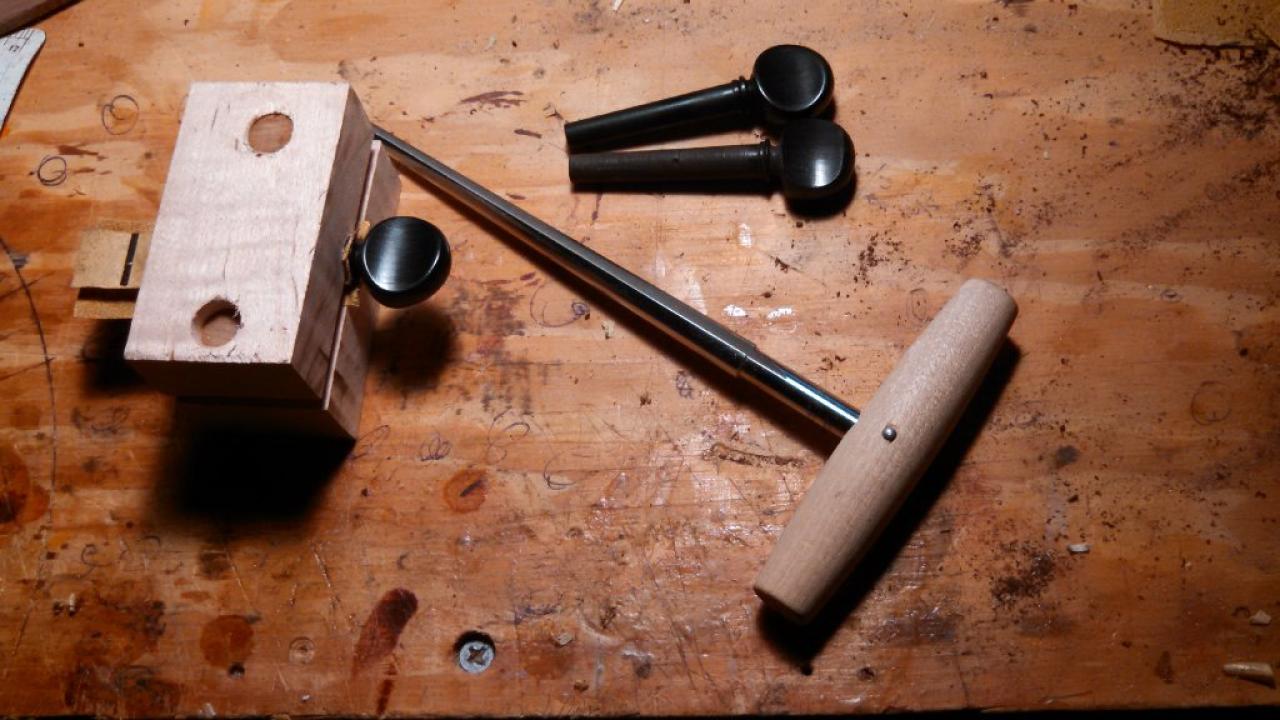 I have a peg reamer but never could get pegs to work well because commercially made pegs were never a perfect match. So I built this simple peg shaft sander out of scrap maple. Now pegs work much better. Look at the two pegs. One is reshaped the other raw... Robert.