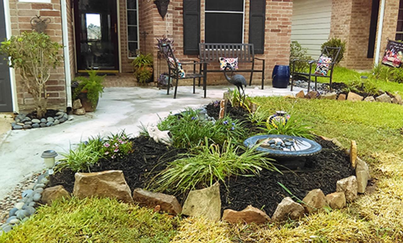 I have a really nice patio out back overlooking a small lake but sometimes it is very sunny in the afternoons so I put in a small paved sitting area at my entrance up front for a shady afternoon. Now I can play outside anytime, just sometimes in the back & sometimes in the front.