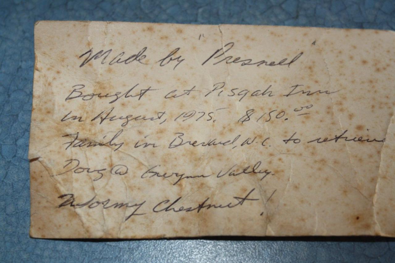 'Twould seem to me that if it IS a real Presnell dulcimer, it would not be anonymous, but have a label inside it to identify things. The Presnells usually marked their products, didn't they? And one might check with The Pisgah Inn on the Blue Ridge Parkway near Brevard, NC. They're still in business, and have a craft/gift shop as well.