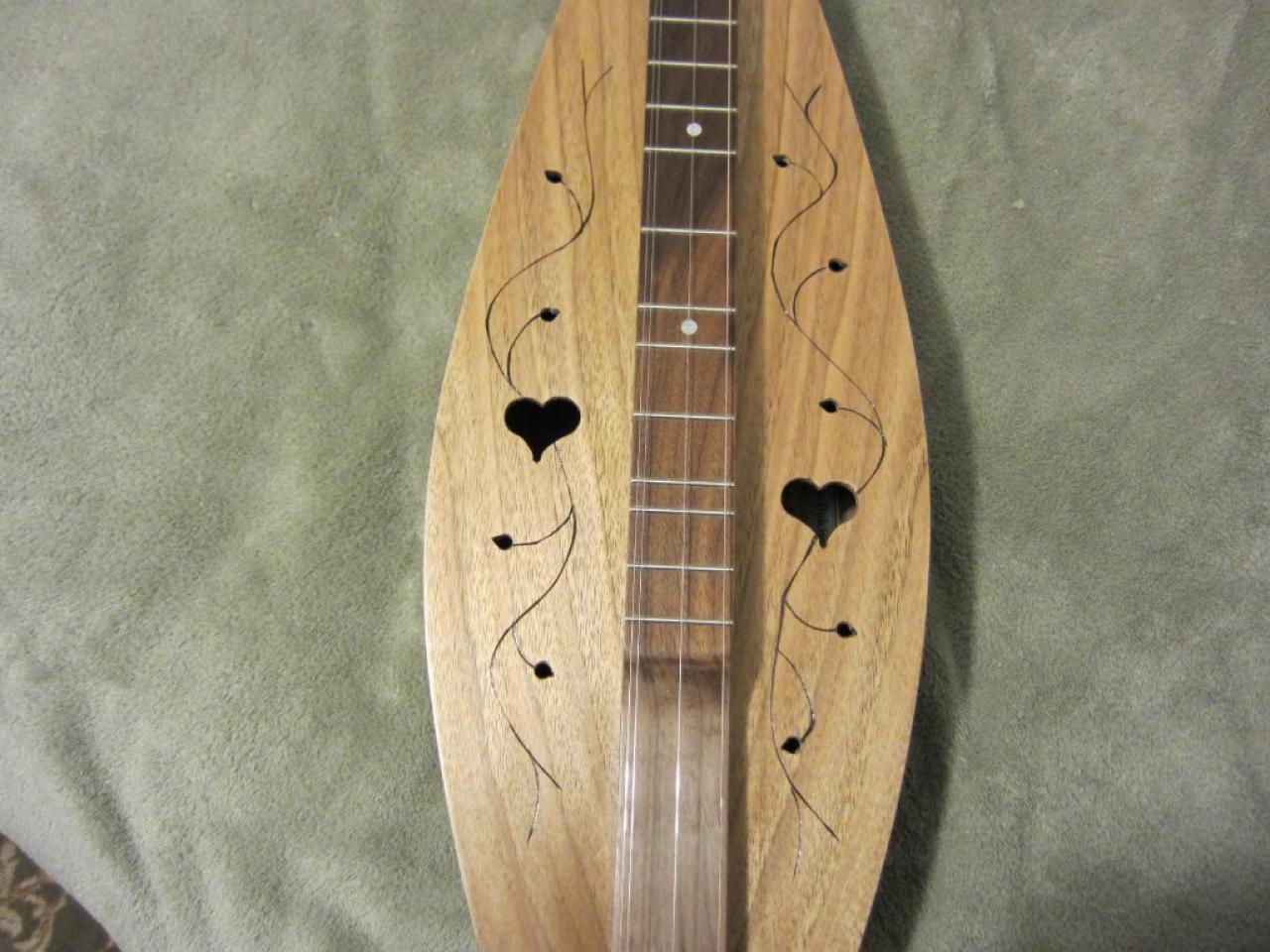 You are right Barbara. George Haggerty of Jacksonville, VT. ( Sweet-water Dulcimers) is my friend, neighbor and dulcimer building mentor and has been handcrafting some of the sweetest sounding dulcimers I have ever heard for 30+ years. His trademark design are his offset hearts and vines. As you mentioned he makes hourglass as well as teardrop dulcimers. The quality of his dulcimers are top notch!