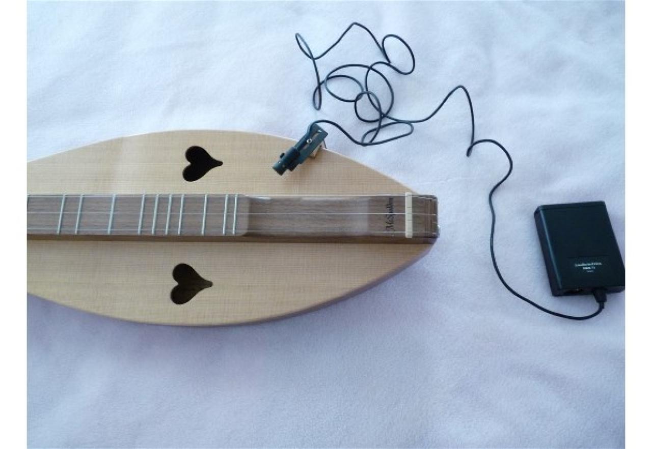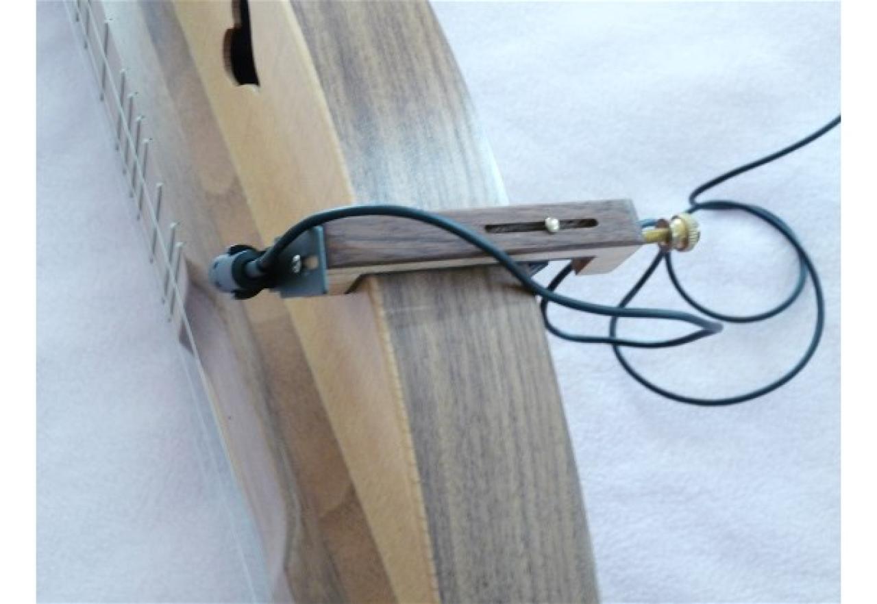 Ron Ewing ( http://www.ronewingdulcimers.com) sold me mine probably 10 years or more ago. He made the clip-on apparatus for the dulcimer, which looks a lot like his capos, just longer to span the body of the dulcimer. Sounds great though it takes some experimentation to find the sweet spot for mounting it. It is a pretty nifty set up.