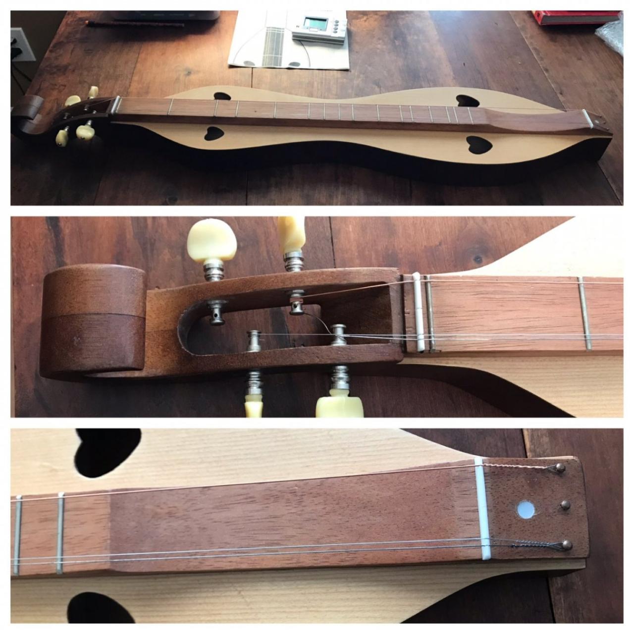The first thing I did was attempt to tune the dulcimer. I was trying for DAA. I had to work a bit to get the D to hold, but eventually I got it. The middle string was very challenging because I realized the pegs were slipping. I could see it slowly turning. There was a high pitched sound as the peg turned back. Eventually, I could get to A, although it didn’t hold for long and I started to work on strumming. On an attempt to tune the middle string to A, it popped. Now I am left wondering if this instrument is good enough to learn the basics on and have new strings installed, or if I just need to find another dulcimer. After looking at pictures of other Dulcimers, I suspect this may not be very well made. I will attach a few pictures and I appreciate any feedback. Thanks so much.