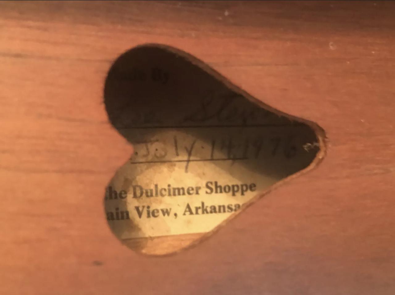 Lastly, my dulcimer is circa 1976 made by The Dulcimer Shoppe in Mountain View Arkansas. See photos.