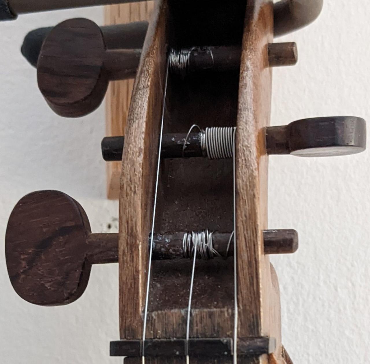 To both Ken's, on bass string recommendations - .018 or .020 plain, or .020 wound, for my 28" VSL?  And yes, the tuning peg shafts are thin - looking at the possibility of replacing them, even violin pegs seem somewhat wider in diameter, which would require reaming the holes or sanding down the new pegs, neither of which I'd be comfortable doing. Even replacing them with Grover dulcimer tuners would require alterations.  I agree with Ken Hulme that I should perhaps try to salvage the original pegs.  Thanks
