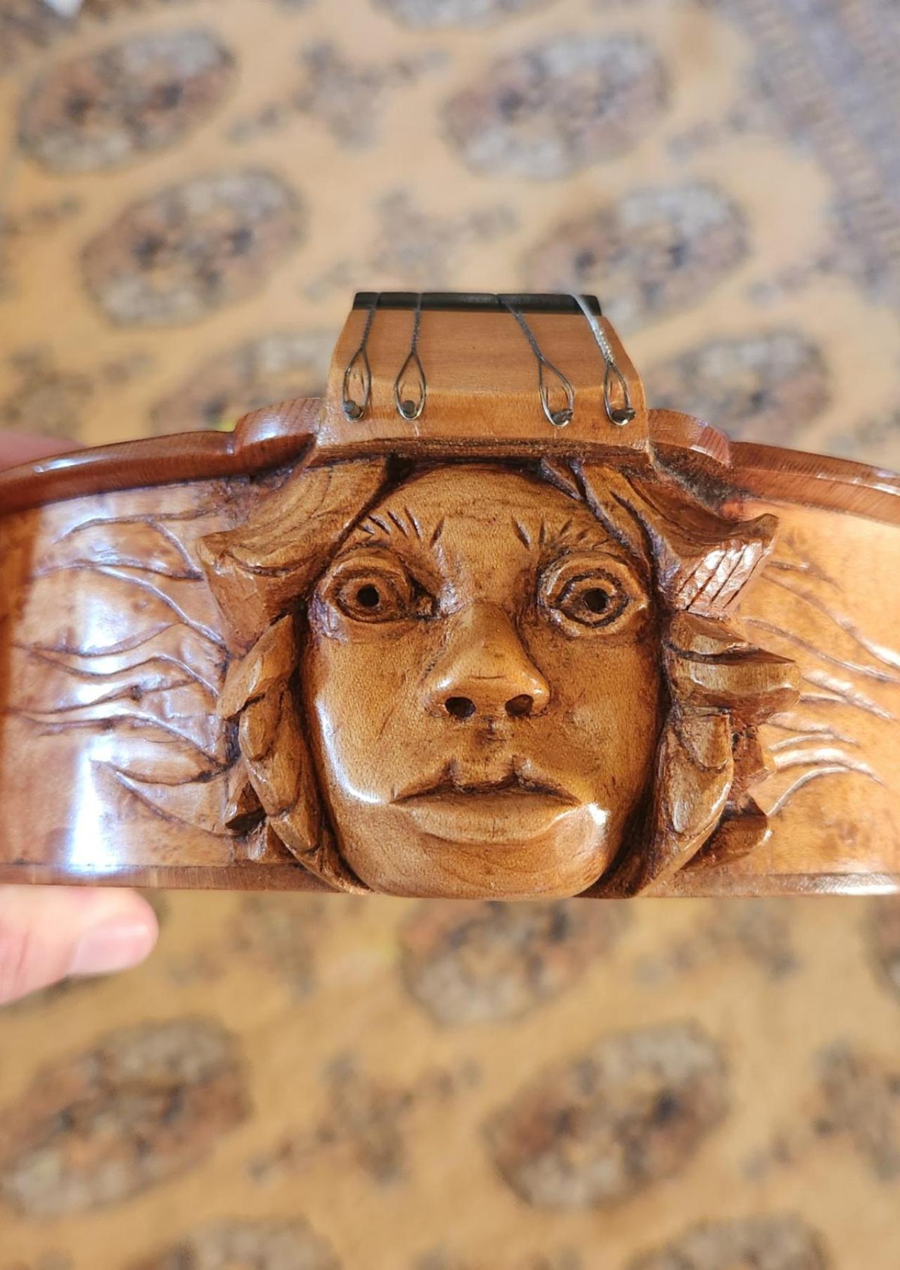 He is famous for putting intricate carvings of faces on his dulcimers, and although THESE faces look somewhat different than Ron's faces, it's a possibility.  (On the other hand, I think Ron put labels in all of his instruments, so there's that).
