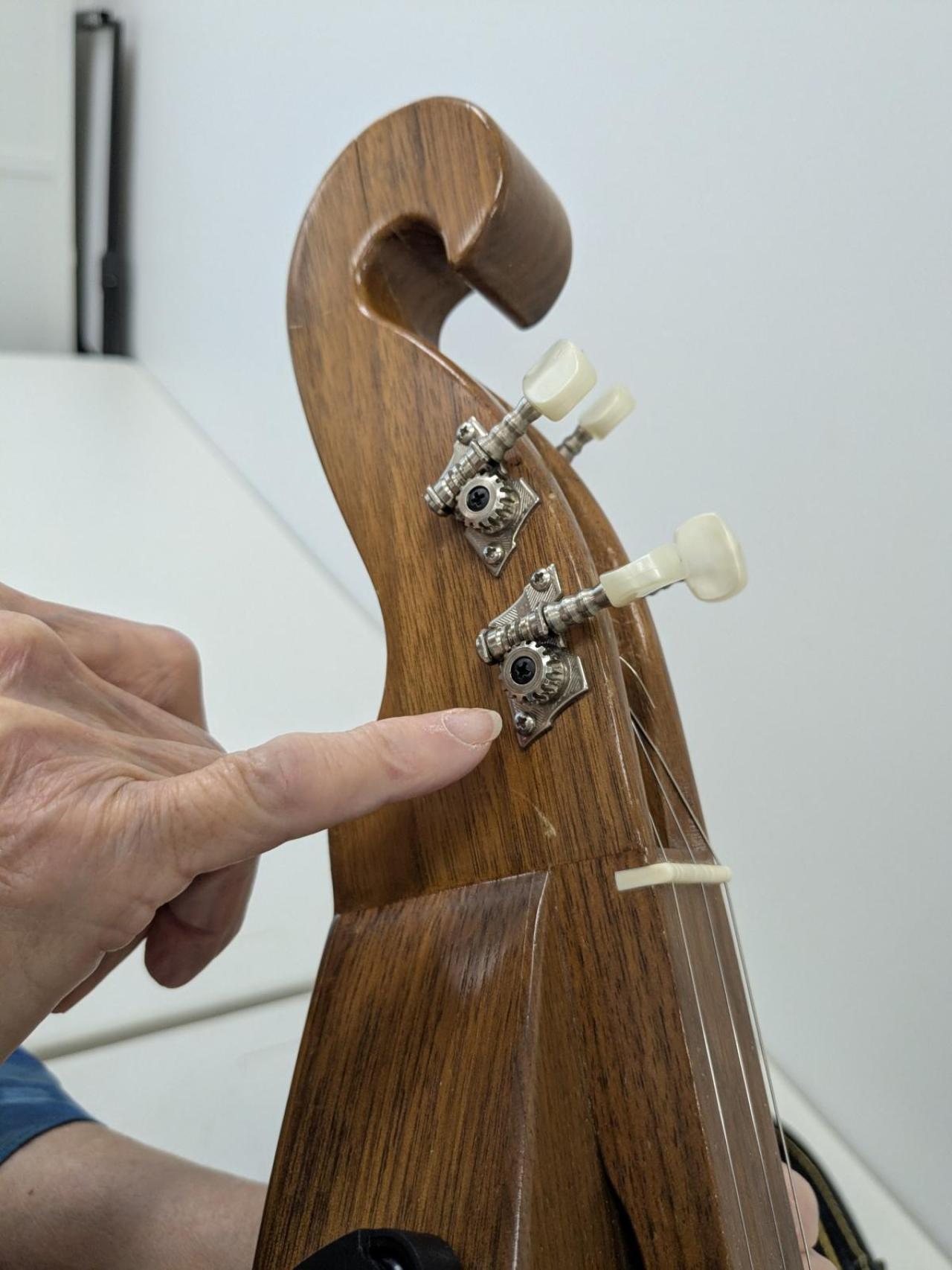 I play with a dulcimer club located in Fairhope, Al and today I was assisting a young lady in tuning her dulcimer. She has a beautiful Folkcraft dulcimer which as an excellent voice. The dulcimer is of the vintage when Folkcraft's company was located in Connecticut. The issue is the instrument is hard to tune because the tuners are extremely hard to turn. Attached please find a photo of the tuners for your reference.