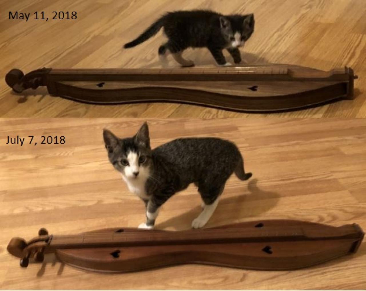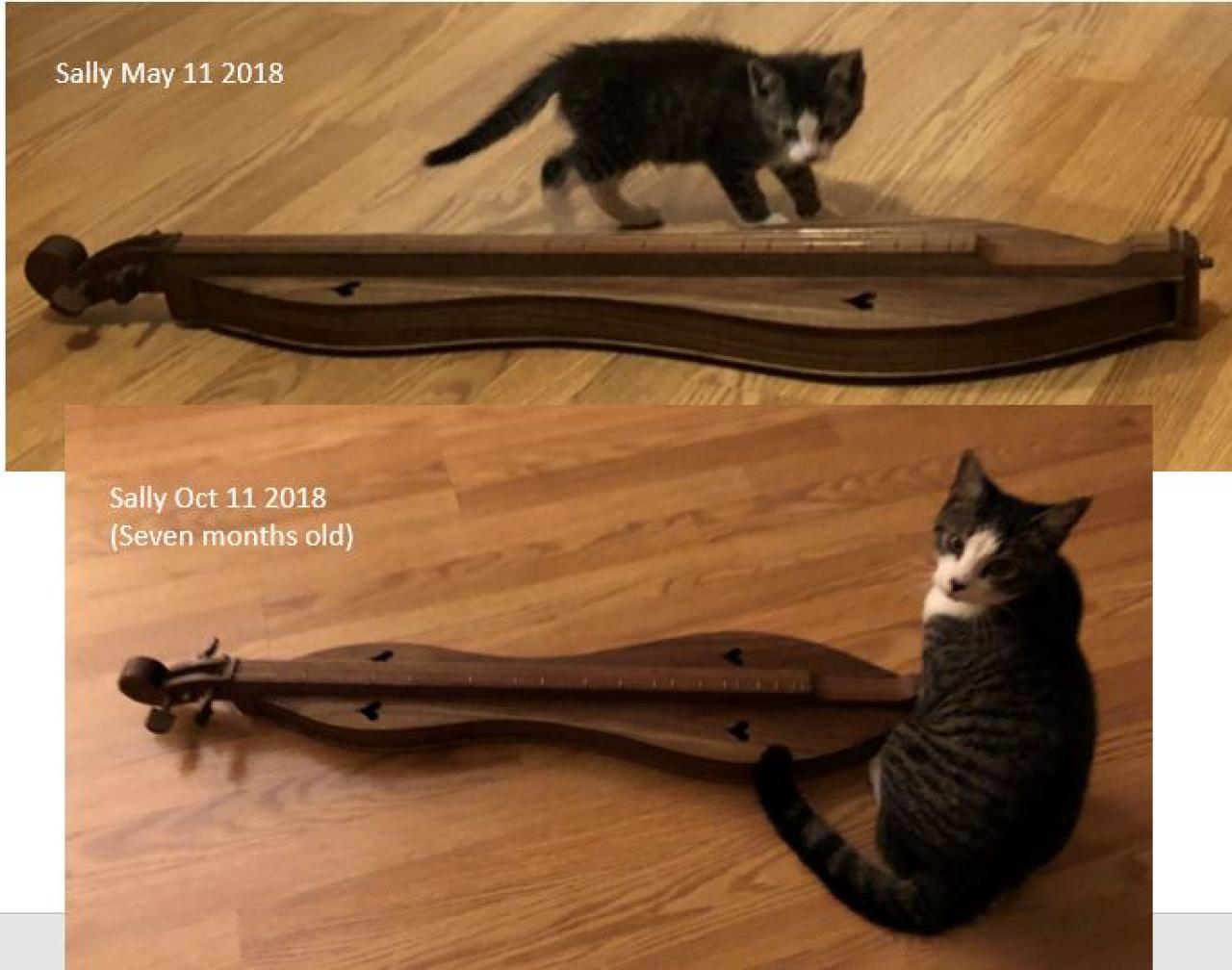 Our previous furball, Peachy, really enjoyed it when I'd play my dulcimer and would contentedly watch me play for the longest time she'd even ask me to play. So far Sally Ann doesn't have a lot of interest in the instrument or listening to it much, though she did the other night. I think right now for Sally Ann everything in the world is too new and interesting to sit around and listen to me play music. My guess is when she becomes an adult cat she won't have so much energy and have a more contemplative. And if not, that's ok too!