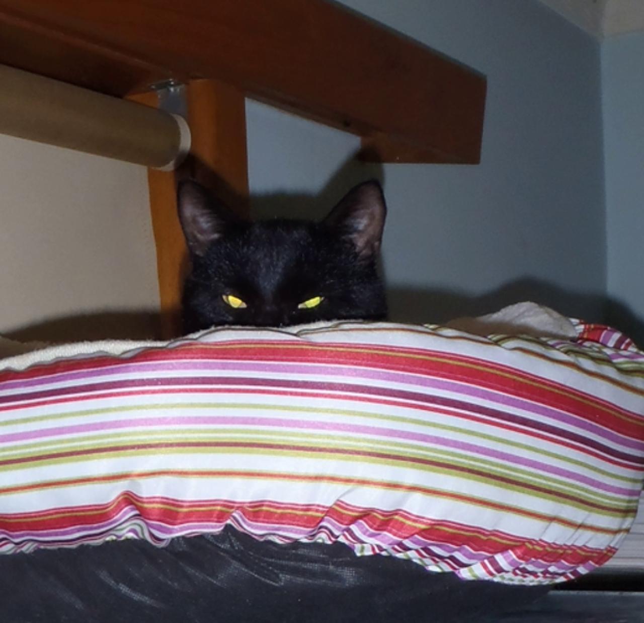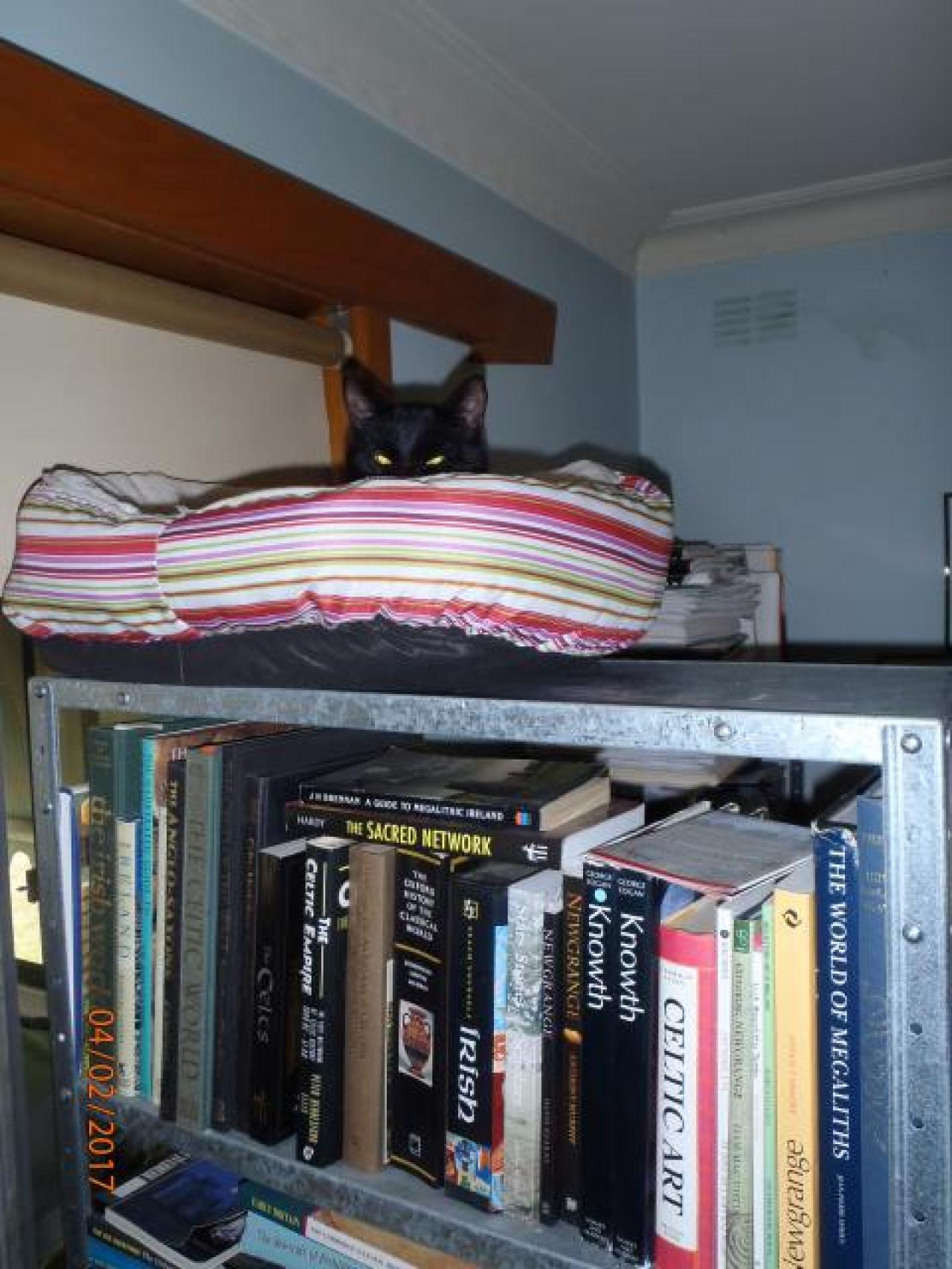 Sheba (aka Boo Boo) likes to lie on the backs of chairs and along the tops of open doors.
