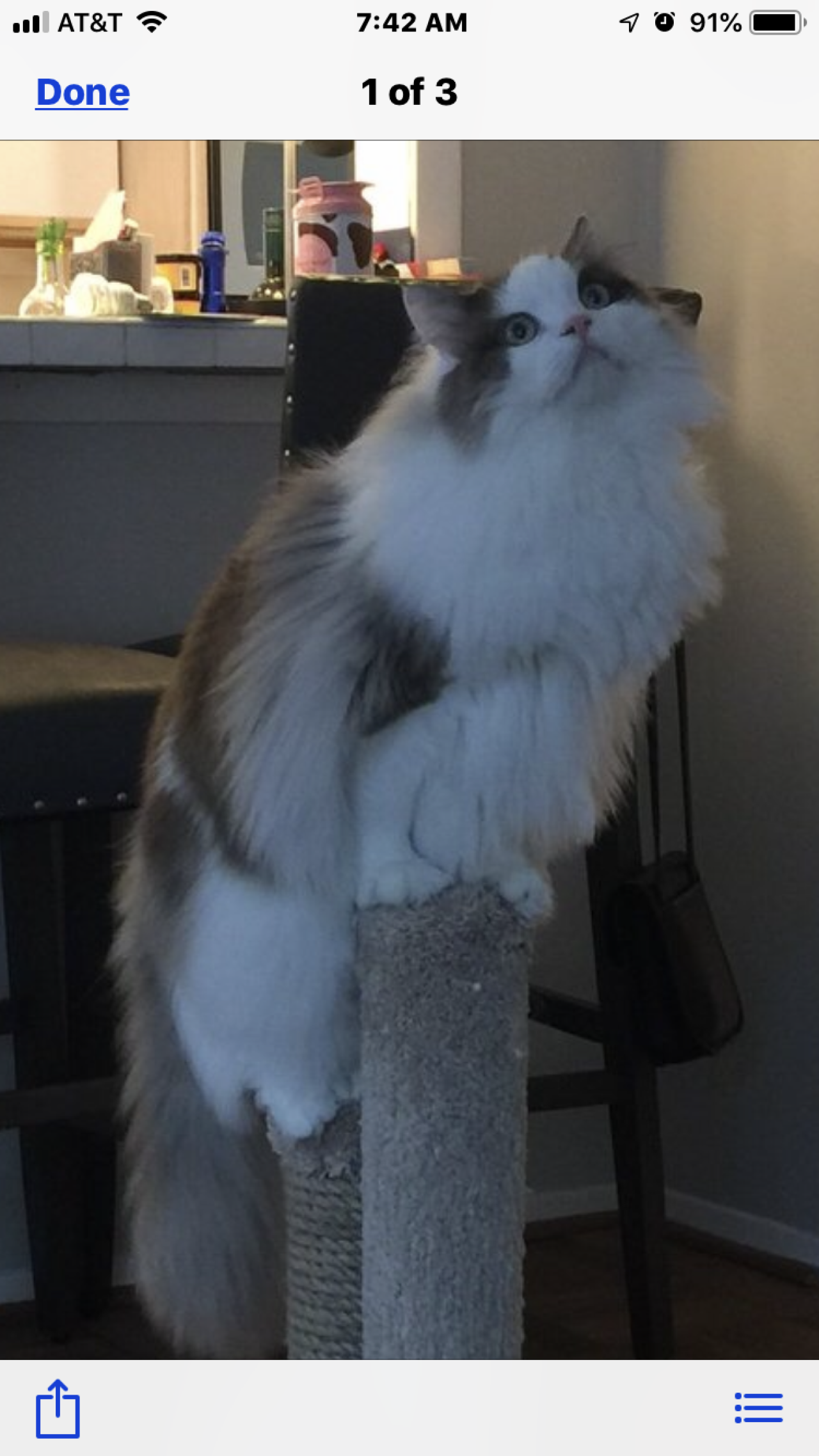 Our little stray who showed up just shy of a year ago has us so well trained. It's amazing how we cater to her. She jumps on our laps for a short time, but it hs to be her decision. And we are so honored. Love that little critter.