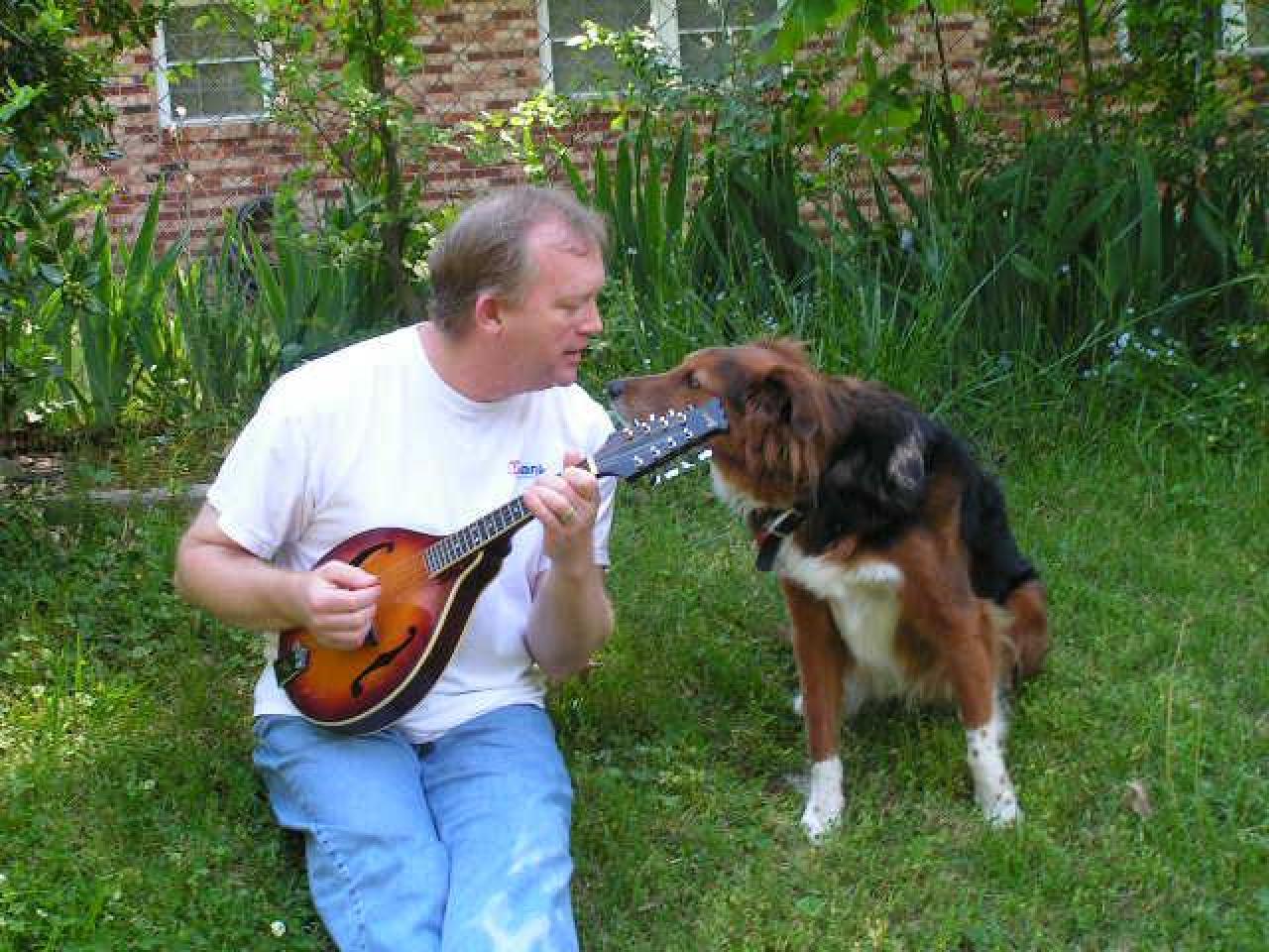 My two boys. Shep, the one with the mandolin, left us five years ago, but Riley is still enjoying the "Life of Riley." Love them both.