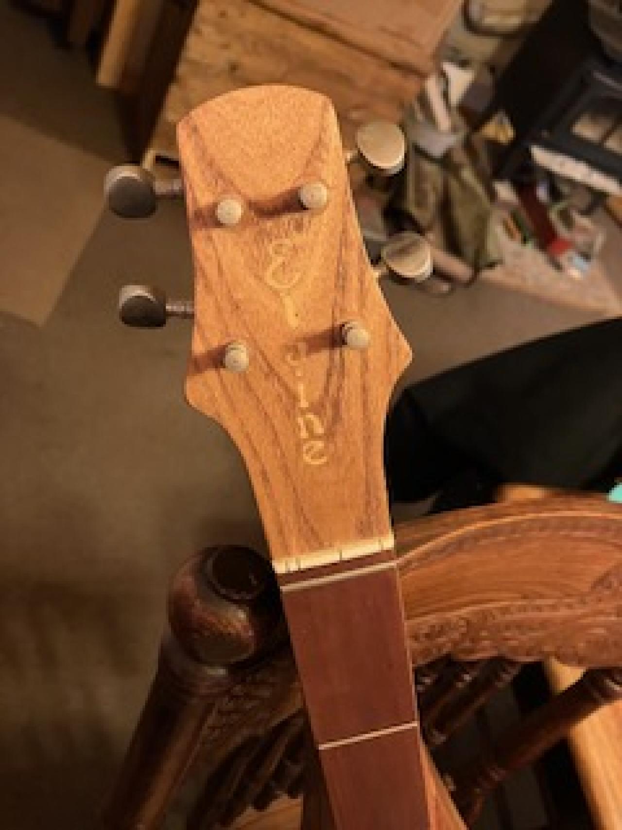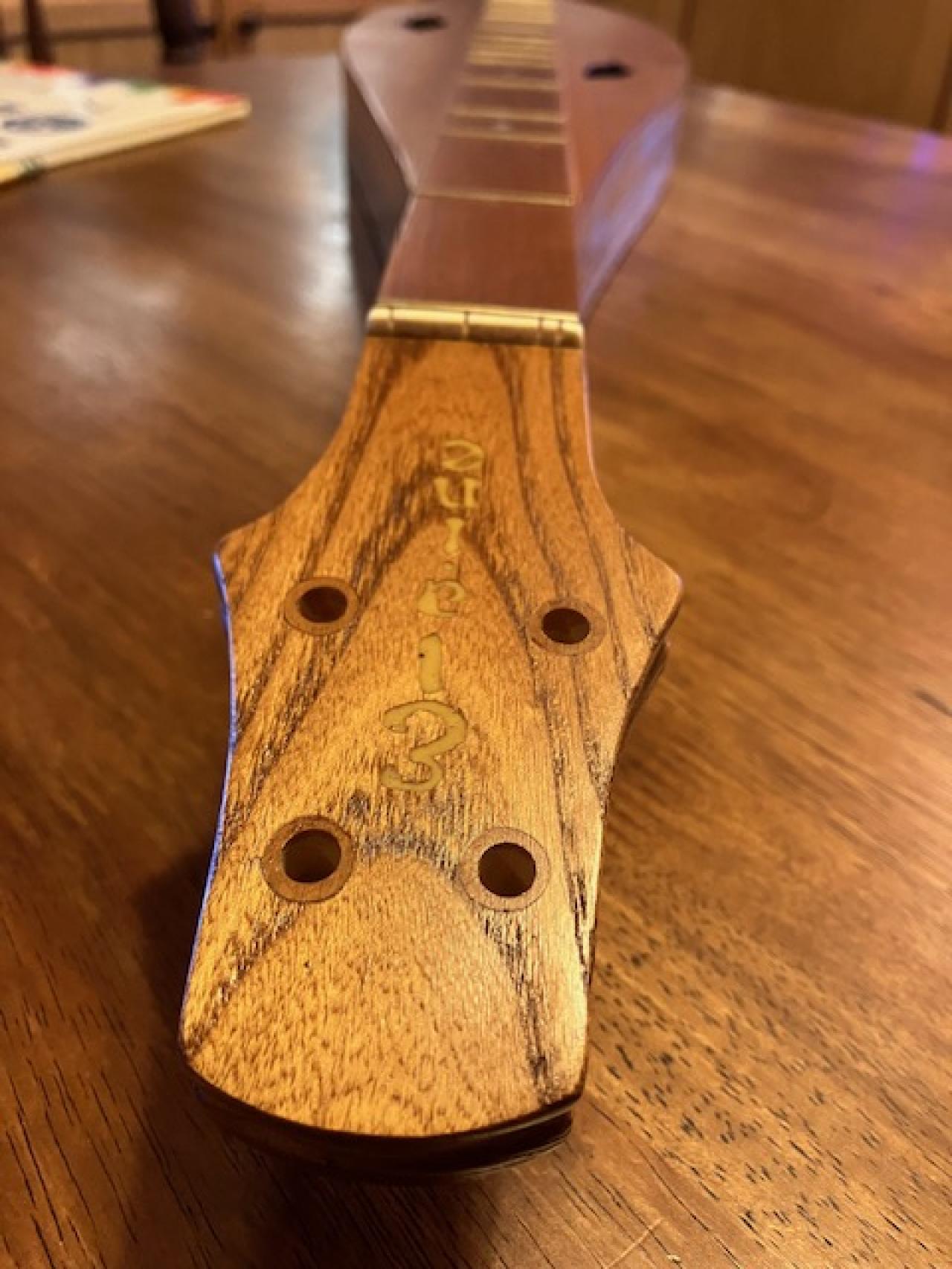 Probably re-fit the tuners and put new strings on it tomorrow. I took some pics this afternoon, trying to show the state of the finish at this point..........