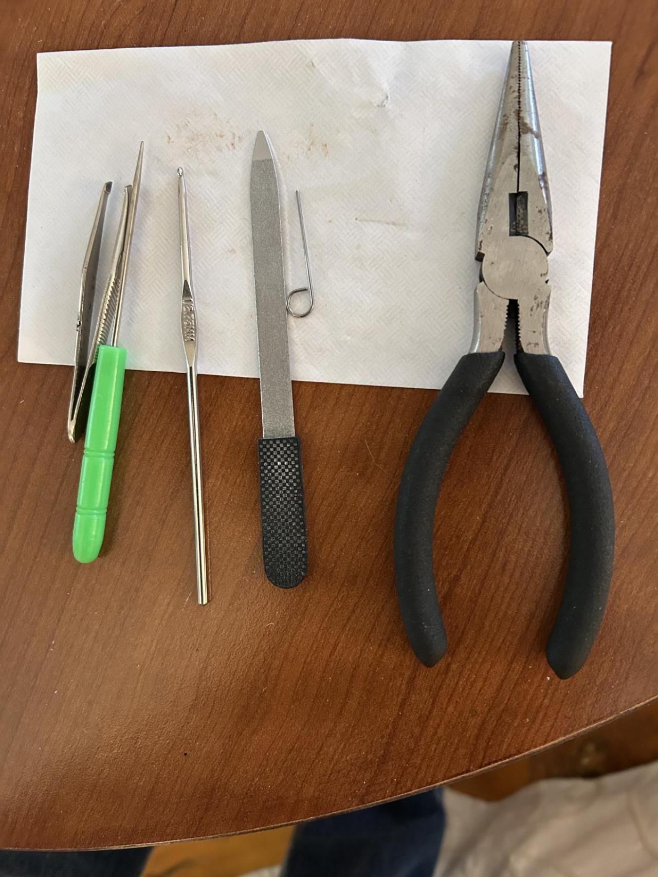 So friends, I did it. I got the wound and wound and wound strings off. It took a bit of ingenuity and most of my patience as well as various random household items as they popped into my mind. I will say that whoever put those strings on did not own or play another instrument. Because if they did they never would have done that. Did I mention that they were wound that way at the pegs also? Pic of random household items attached.