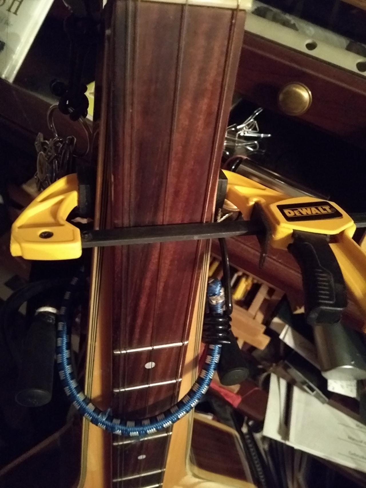 I also like your capo, I was trying to coming up with one for my dulciborn. I thought about something like yours but never found something to stretch around that would hold it tight enough. So, I came up with something that will work, it's a small DeWalt clamp. It clamps not on the fret board but the side of my dulciborn.