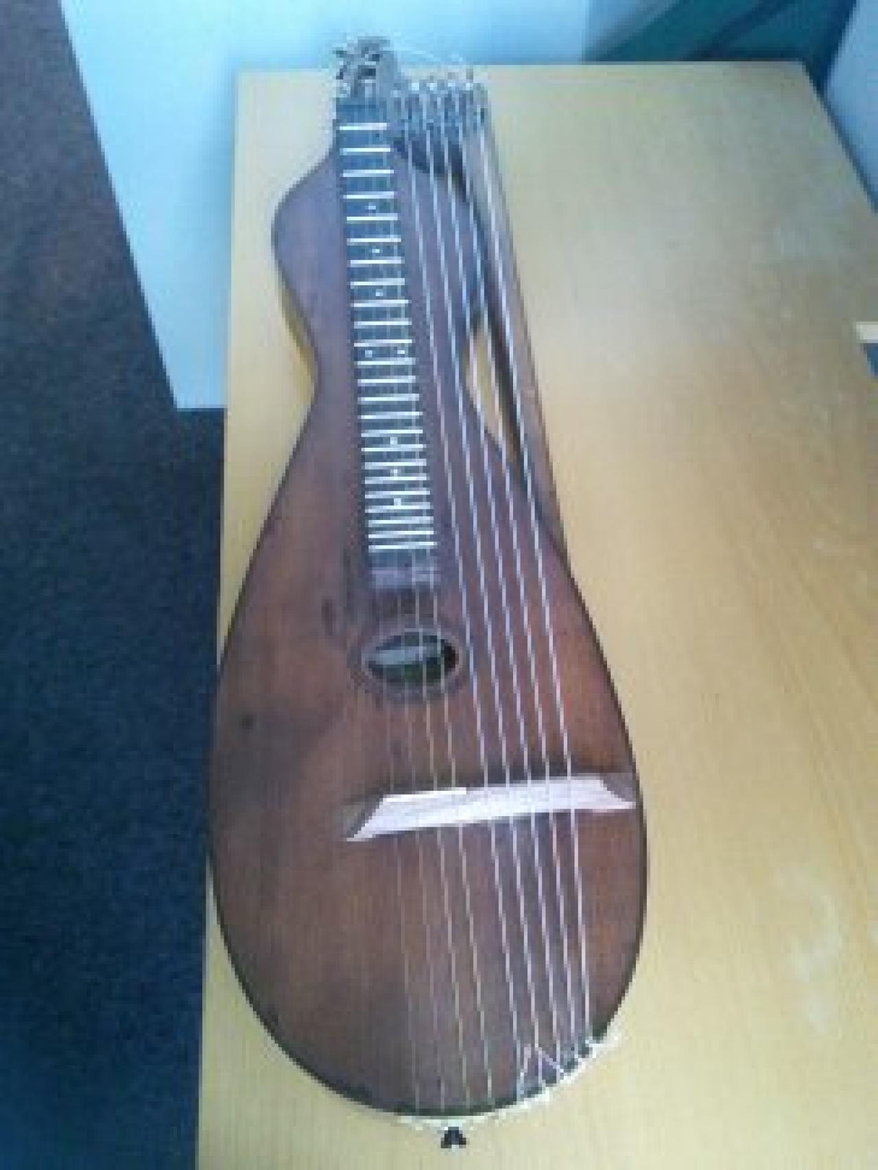 It's a baritone dulcimer with added harp strings it was made by Ken Bloom.