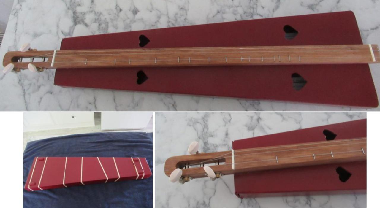 This old hymn is played traditional noter drone style on a dulcimer with a cardboard body. It is a modified Backyard Music kit. I had a builder friend make me a traditional staple board for it. I added feet to it. The stapleboard is a light black walnut with some nice grain.