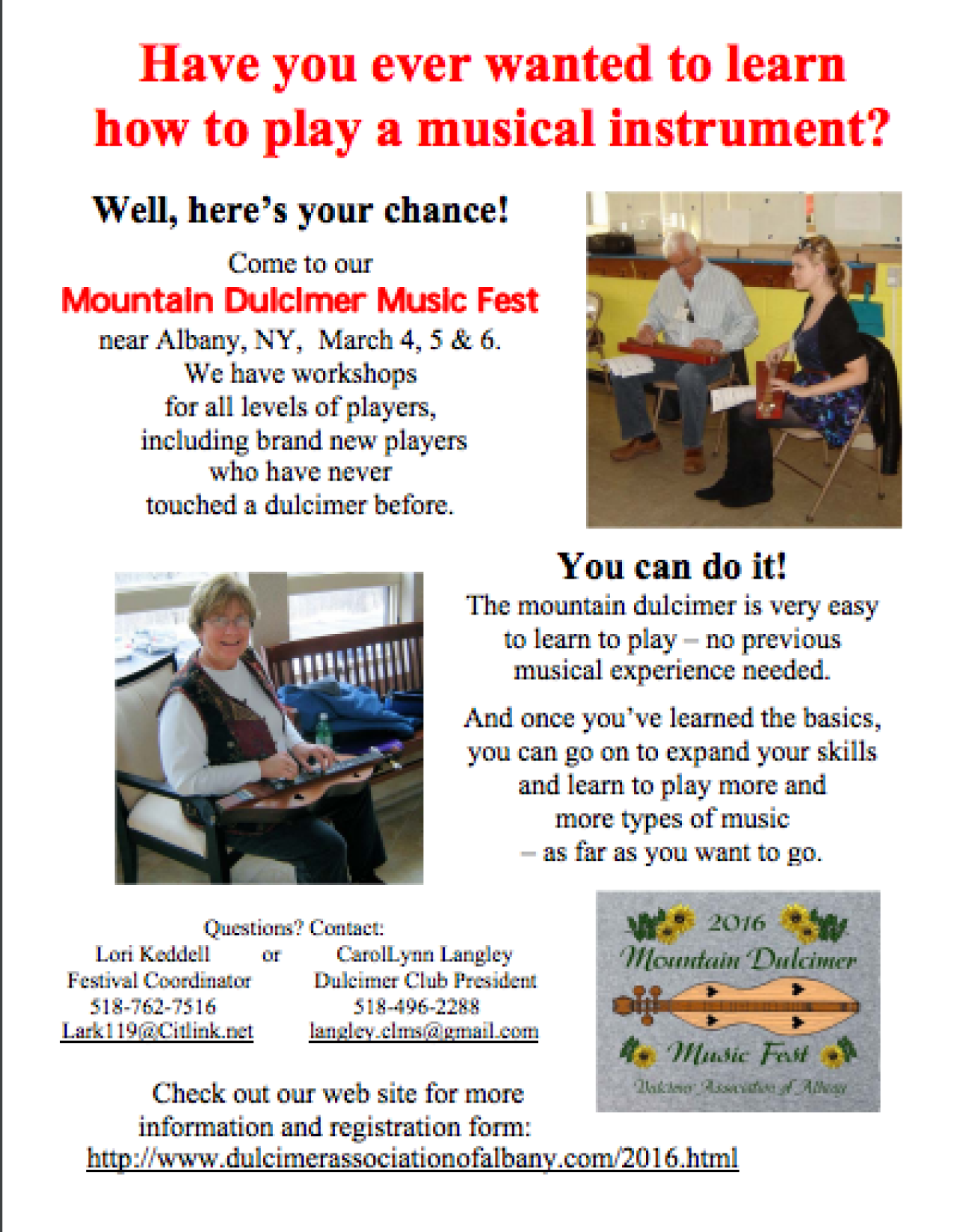 Albany Dulcimer Festival March 5, 6, & 7th 2016!~~~ There's still time to register!! :)