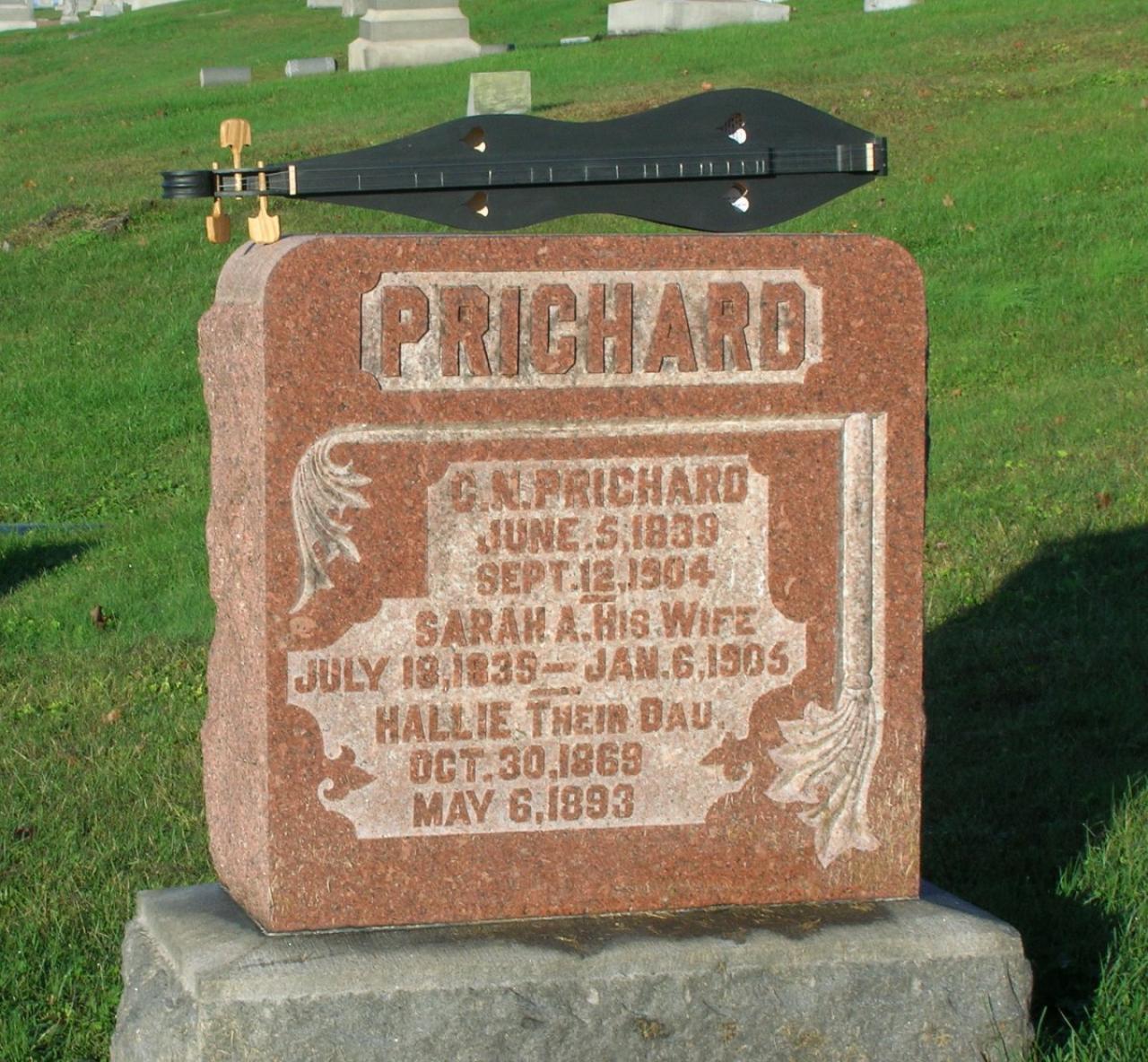 Here is photo you may like. This is a reproduction of a Prichard dulcimer I made and placed on his grave stone for the photo. I would enjoy seeing some photos of your Prichard. Does in have an intact label? A few of us who build reproductions keep a list of known Prichard dulcimers. I will add yours to the list.